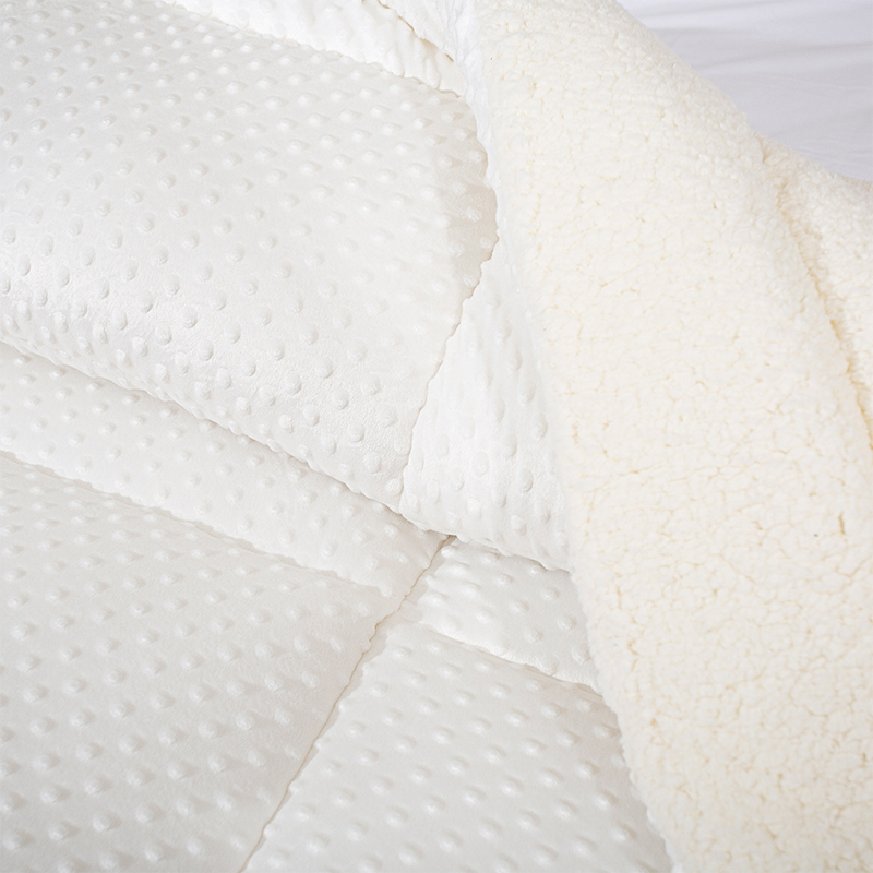 Двустороннее теплый-одеяла размера Queen изготовлены из двухсторонних материалов, версии мусорных точек (текстурированный плюш бобов) имеет тонкую и мягкую текстуру, а плотный пух не проливается. B-версия кашемирная ткань из ягненка, поглощение влаги и дышащая, подходящая для сна обнаженного, с нежным прикосновением и теплом, благоприятным для кожи.